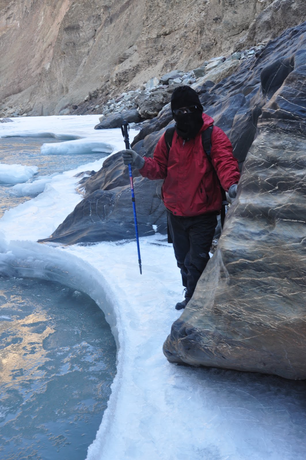 Supovit on a narrow chadar – the porter had slipped into the waters near one of these